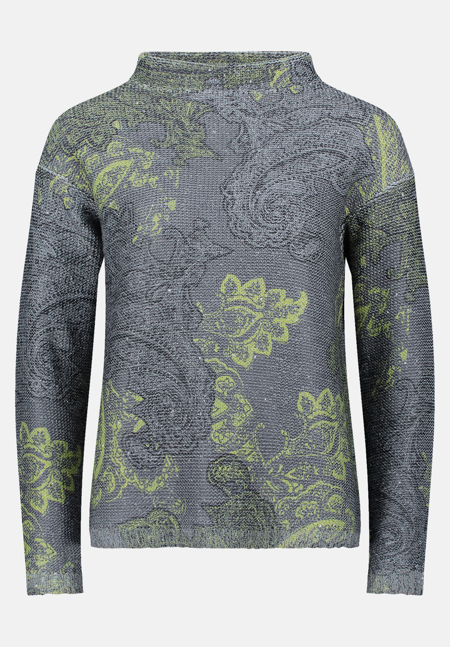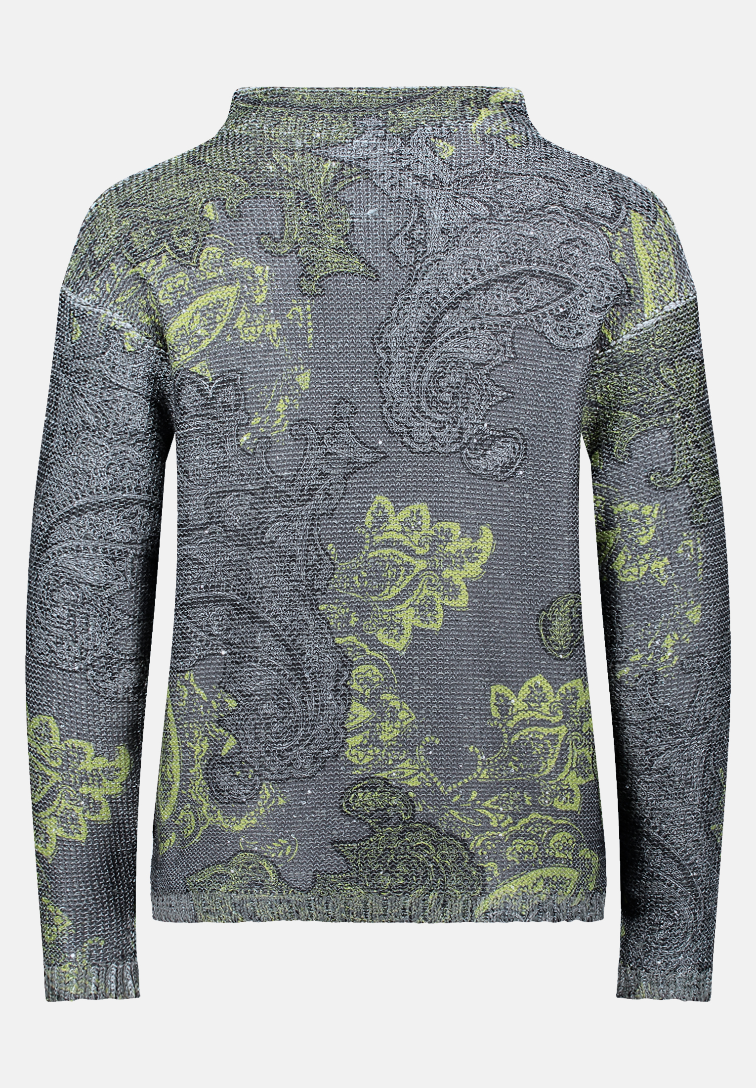 Dieser lässige Strickpullover verbindet modernen Komfort mit trendigen Details. Funkelnde Pailletten und ein stilvoller Kragen setzen modische Akzente, während das verspielte Paisley-Muster dem Look eine besondere Note verleiht. Ideal für alle, die es gemütlich und gleichzeitig stilvoll mögen.
