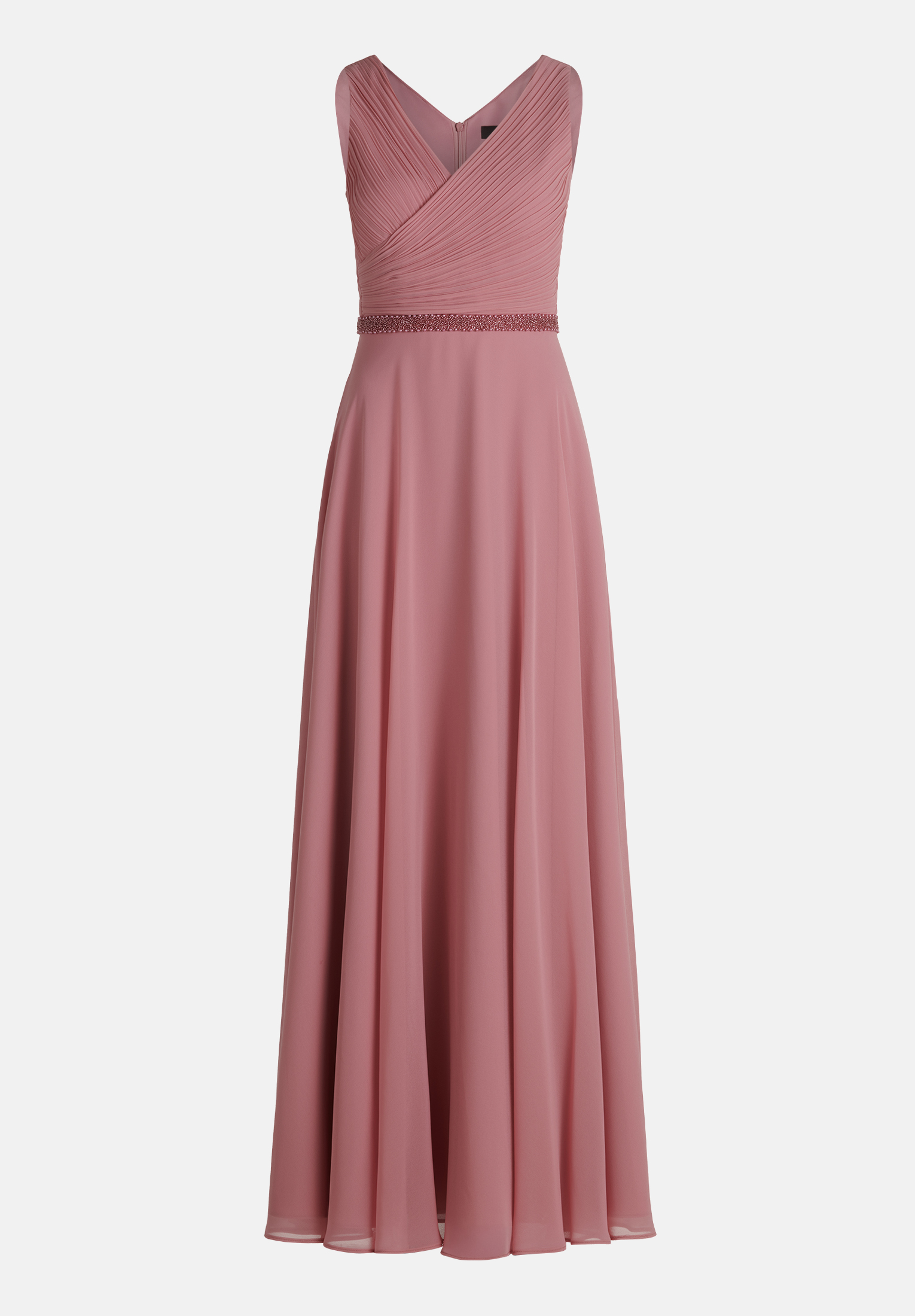 Absoluter Hingucker! Das Abendkleid von Vera Mont mit Dekoelementen, eleganten Falten und leicht ausgestelltem Chiffonrock versprüht zeitlose Eleganz. Uni in der Farbgebung, mit festlichem V-Ausschnitt und ärmellosem Design. Ein festliches Must-have für besondere Anlässe!