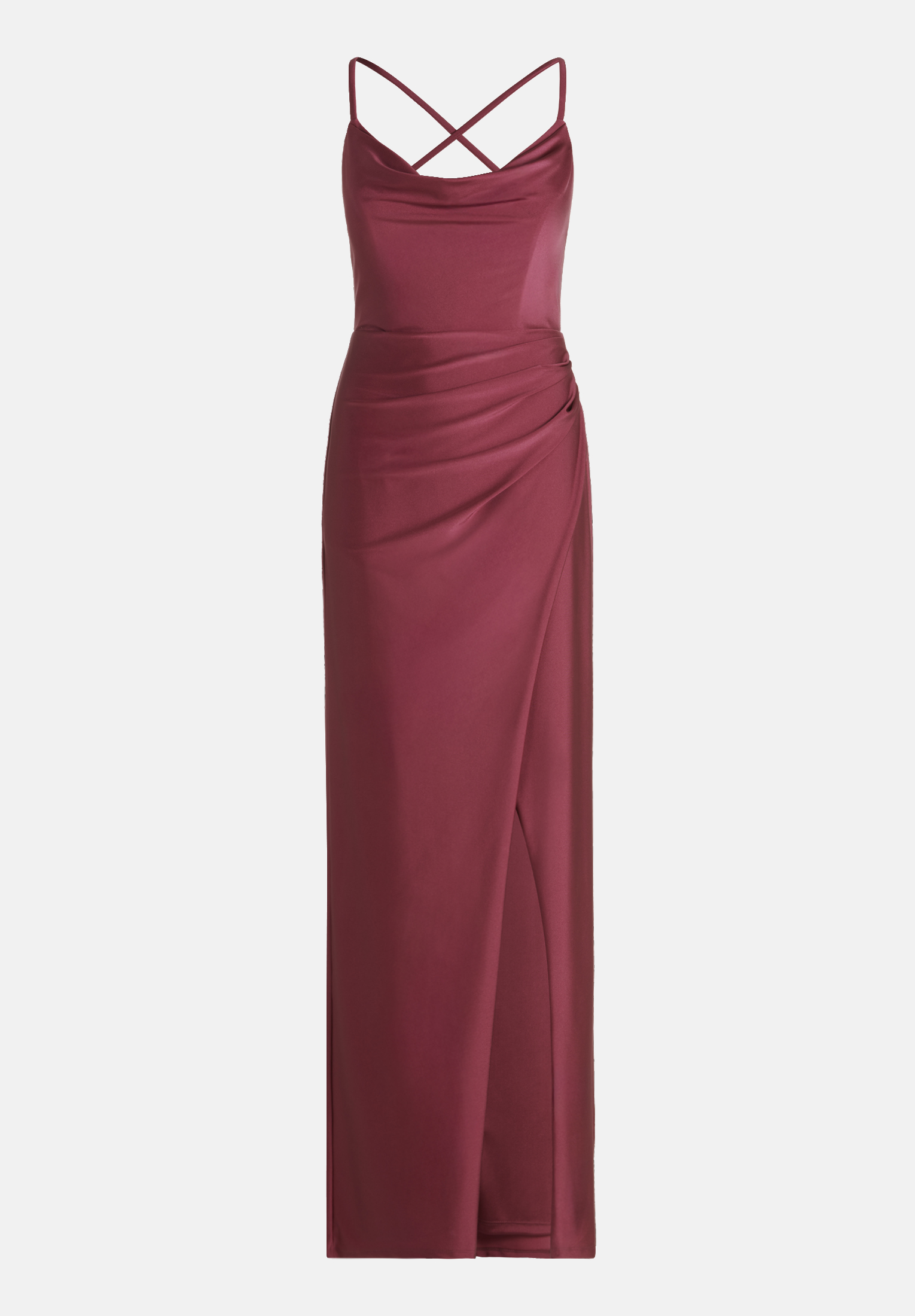 Das elegante Abendkleid von Vera Mont besticht durch ein raffiniertes Design: Eine geraffte Taille, ein hoher Schlitz und ein Wasserfallausschnitt verleihen dem Kleid eine besondere Note. Das figurbetonte, ärmellose Satinmodell bietet durch die verstellbaren Träger individuellen Tragekomfort und wird durch einen Reißverschluss ergänzt. Ideal für besondere Anlässe.