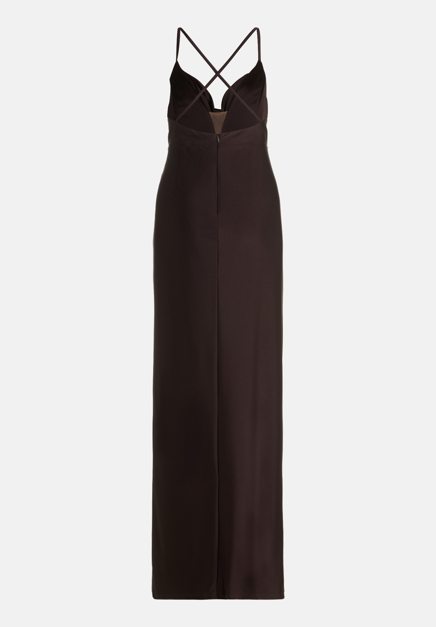Das elegante Abendkleid von Vera Mont besticht durch ein raffiniertes Design: Eine geraffte Taille, ein hoher Schlitz und ein Wasserfallausschnitt verleihen dem Kleid eine besondere Note. Das figurbetonte, ärmellose Satinmodell bietet durch die verstellbaren Träger individuellen Tragekomfort und wird durch einen Reißverschluss ergänzt. Ideal für besondere Anlässe.