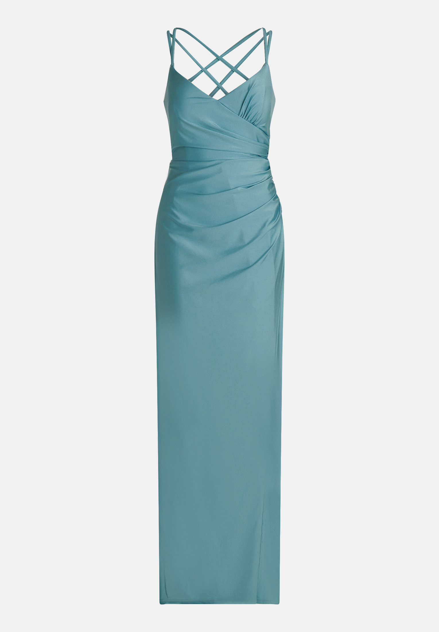 Elegantes Abendkleid für den Abiball: Rückenfrei, figurbetont und mit einem atemberaubenden Faltenwurf. Das Jersey-Material schmiegt sich perfekt an, während der V-Ausschnitt und der Schlitz für eine verführerische Note sorgen. Die Schnürung und der Reißverschluss bieten eine optimale Passform. Ein absolutes Highlight für festliche Anlässe – stilvoll, modern und unvergesslich.