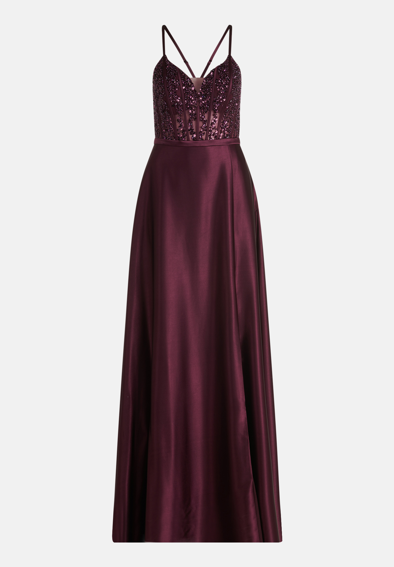 Dieses elegante Abendkleid in Maxi-Länge verleiht deinem Festtagslook glamourösen Charme. Der V-Ausschnitt und das ärmellose Design setzen edle Akzente, während glitzernde Steine dem Kleid einen funkelnden Touch verleihen. Der ausgestellte Schnitt sorgt für eine schmeichelhafte Silhouette. Mit Haken und Ösen sowie einem Reißverschluss lässt sich das Kleid bequem an- und ausziehen. Perfekt für besondere Anlässe, verleiht es deinem Auftritt eine festliche Eleganz.