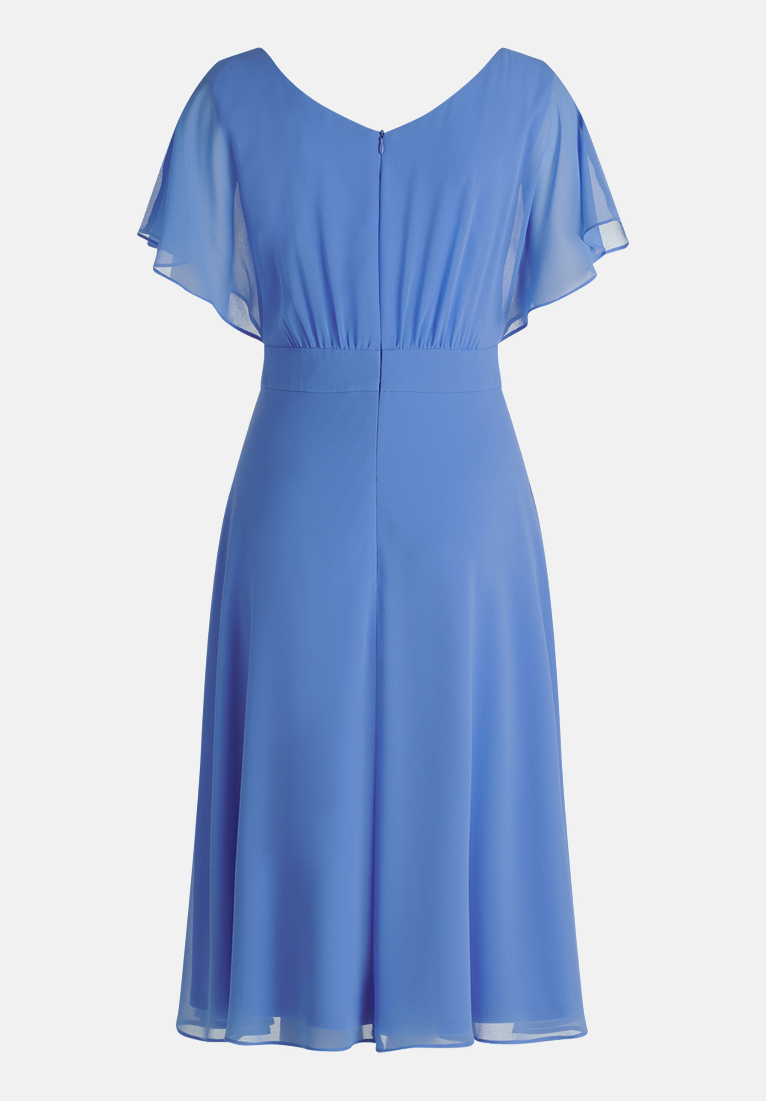 Zeitlos schön - mit diesem Cocktailkleid liegen Sie immer richtig. Der geraffte Stoff sorgt für eine figurbetonte Passform, während der leicht fließende Chiffon den Ausgestellten Schnitt noch mehr betont. In einer schlichten Uni-Farbe präsentiert sich das Kleid mit einem femininen Rundhalsausschnitt und volantartigen Ärmeln. Der praktische Reißverschluss ermöglicht ein einfaches An- und Ausziehen.