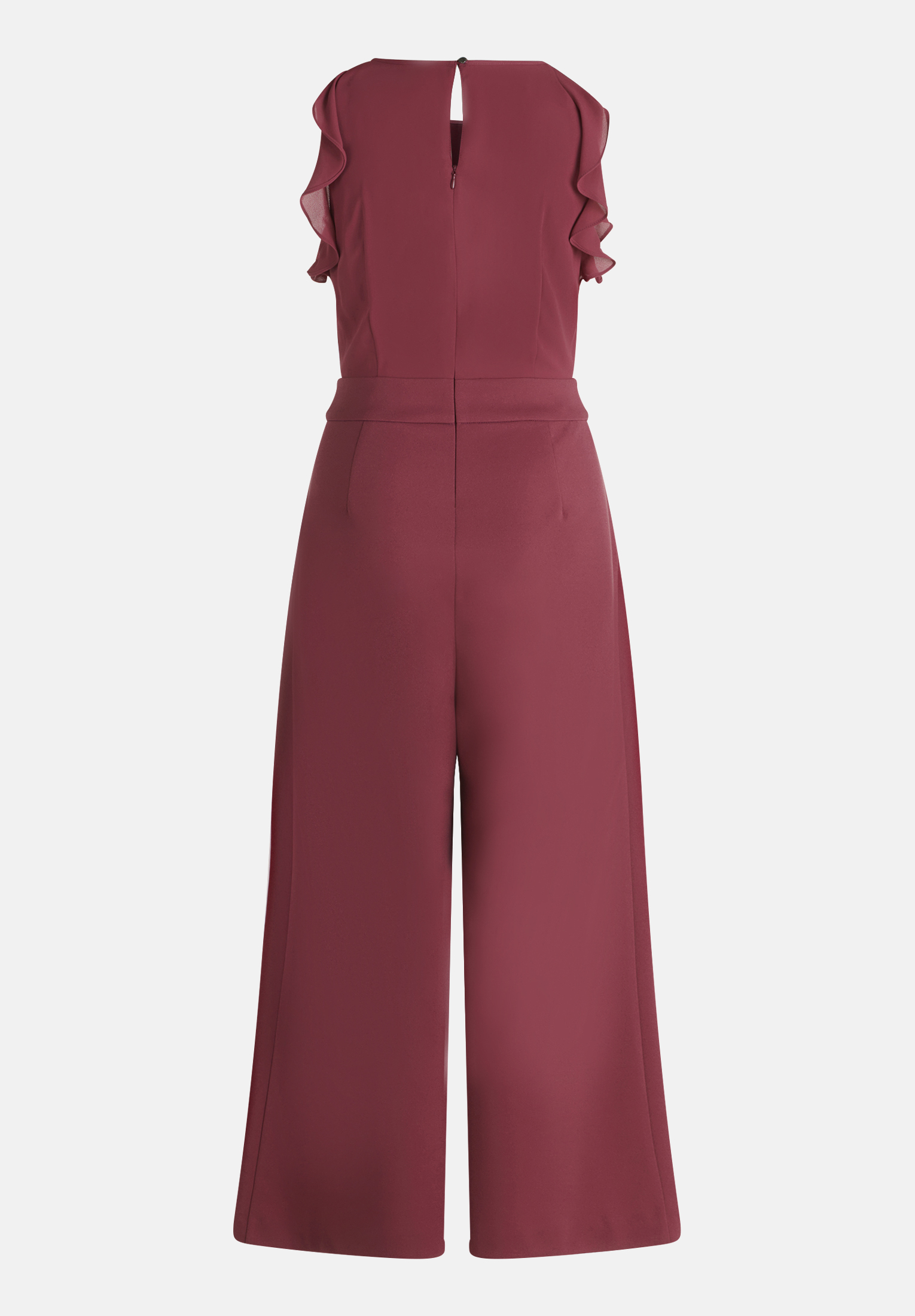 Eine erlesene Material-Kreation, in Optik und Tragekomfort unvergleichbar ist dieser Jumpsuit der Marke Vera Mont. Der Materialmix aus Edeljersey und Chiffon machen den ausgestellten Overall zum festlichen Begleiter. Der amerikanische Ausschnitt ist mit Volants verziert und daher ein absoluter Hingucker. Ein Bindeband tailliert den Jumpsuit und setzt damit die Figur der Trägerin in Szene. Get the Look!